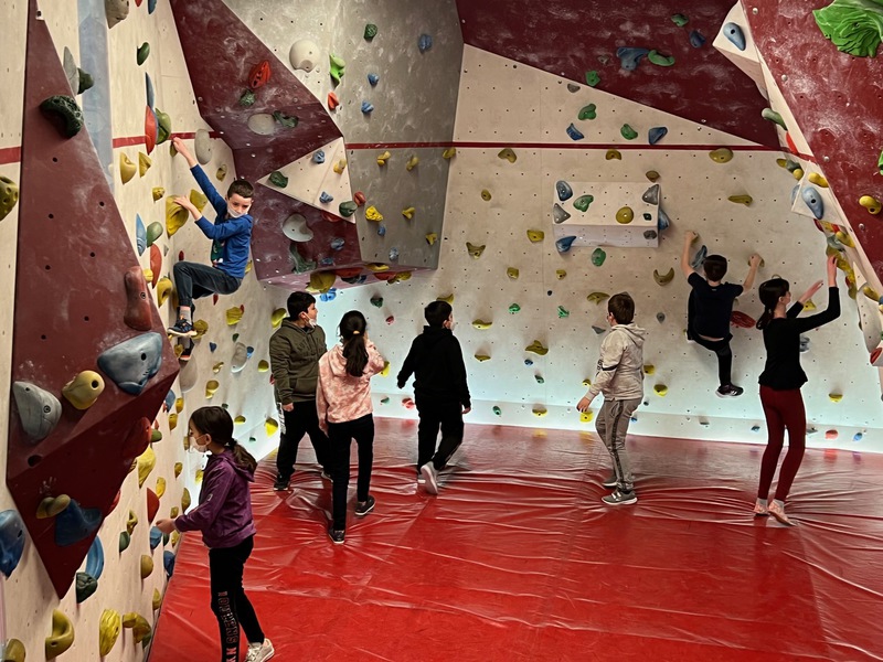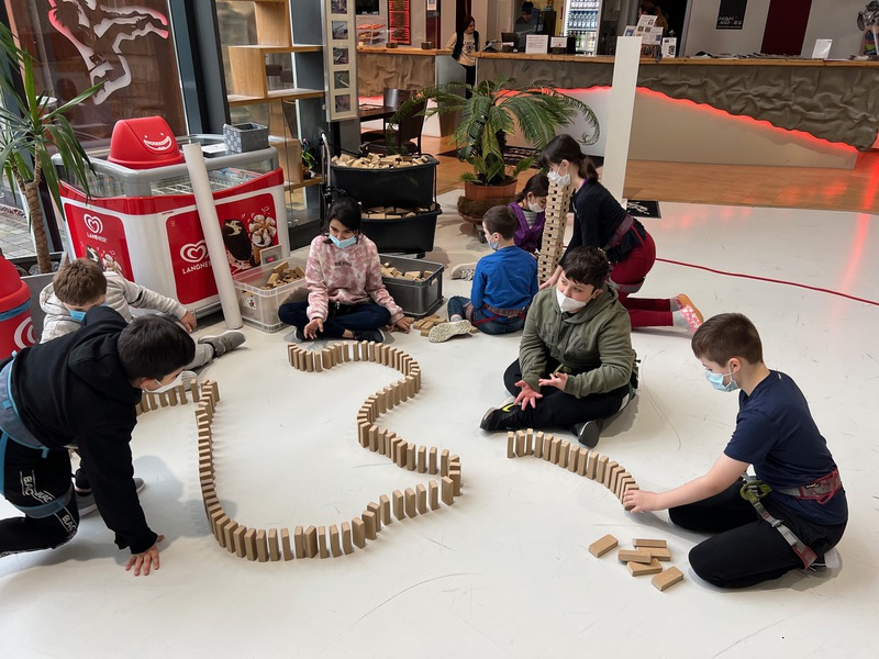 Nun war es auch für die Eisbärenklasse soweit und der Ausflug in die Kletterhalle stand an. Alle Schülerinnen und Schüler der 4. Klasse waren am Ende des Tages begeistert: natürlich in erster Linie vom Klettern, aber auch von der Dominostadt, die sie gebaut haben.